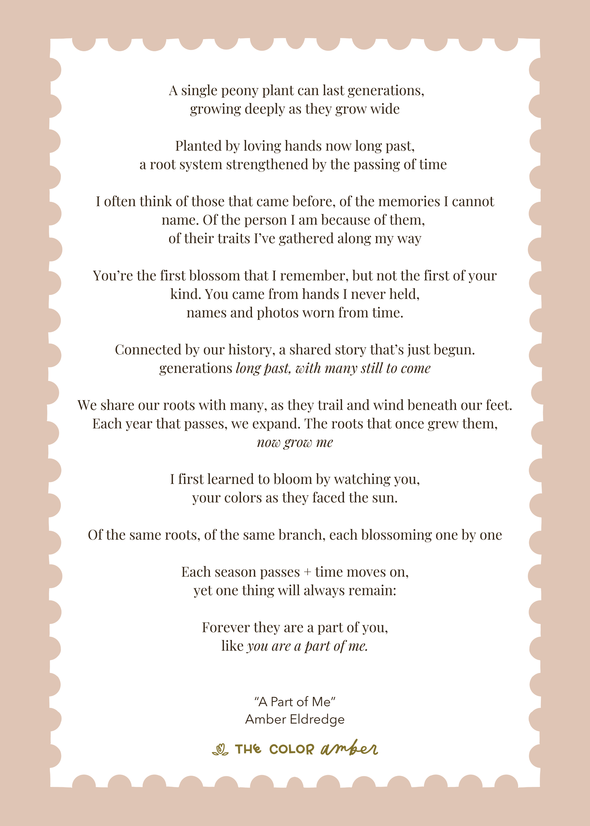 I've always loved the visual of that connection, of the blossoms that come year after year, generation after generation