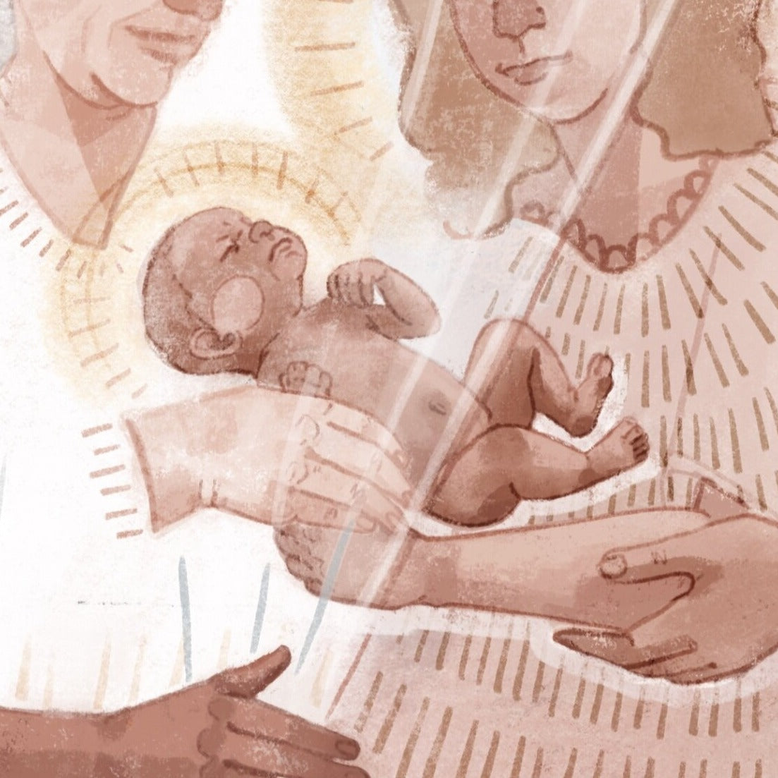 It’s bittersweet; they say goodbye while we wait earth-side to say hello. And, when they pass over that sacred infant, our fingers brush for one moment through the veil.