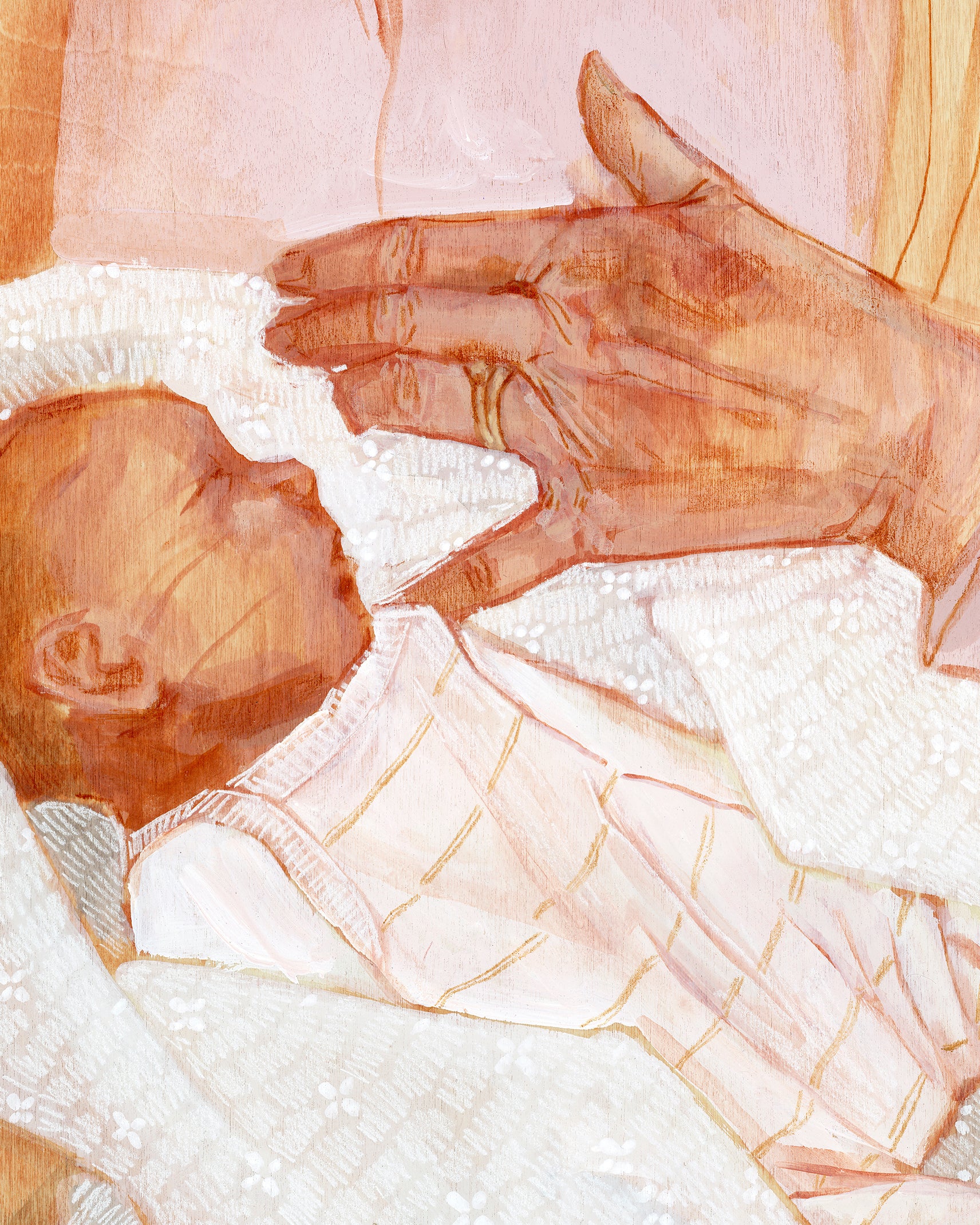Generations knit together through time, on and on. The newness will fade, grow, and stretch. Time will pass, wrinkles and lines will trace around those tiny hands. A story of a life well lived. Someday she'll look down and say, "I know these hands, they're just like hers."