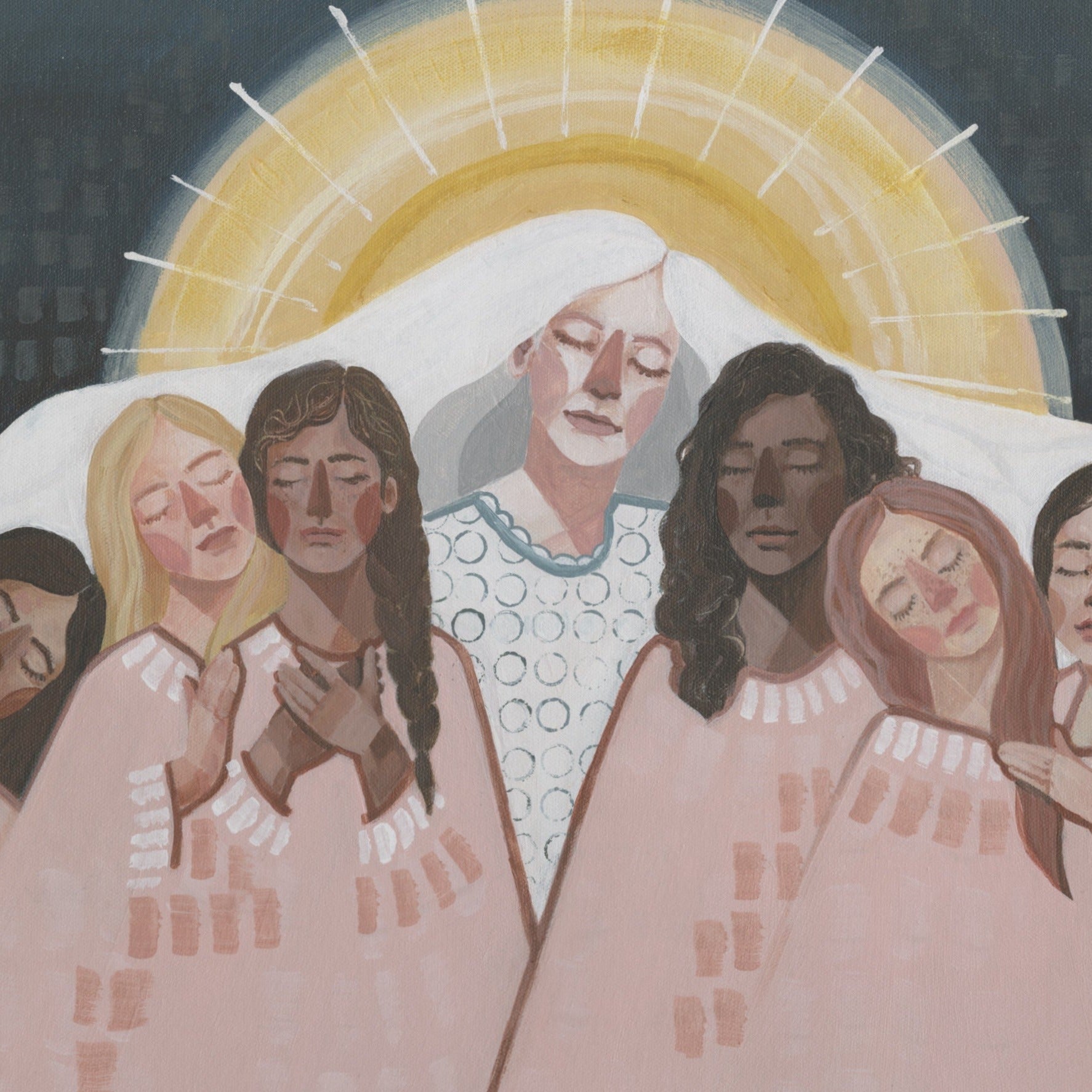 Experience the warmth and comfort of 'In Her Image' Print + Canvas. This reminder of Home and Heaven captures the divine feminine and the tender embrace of Heavenly Mother. A beautiful addition to any home, it celebrates the bond between a mother and her daughters.