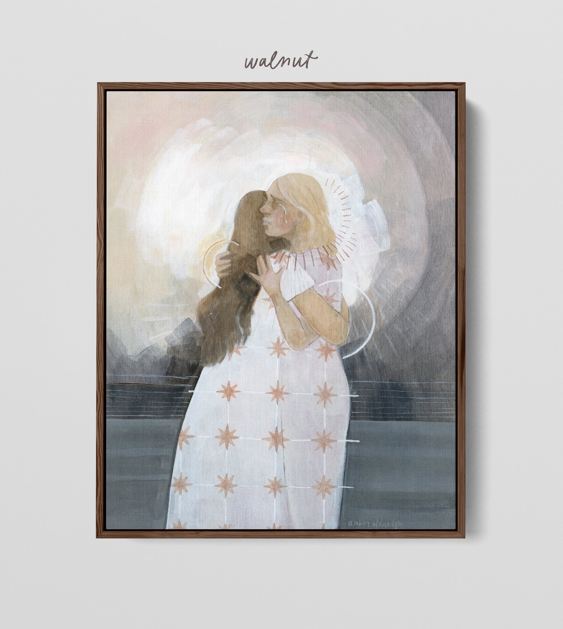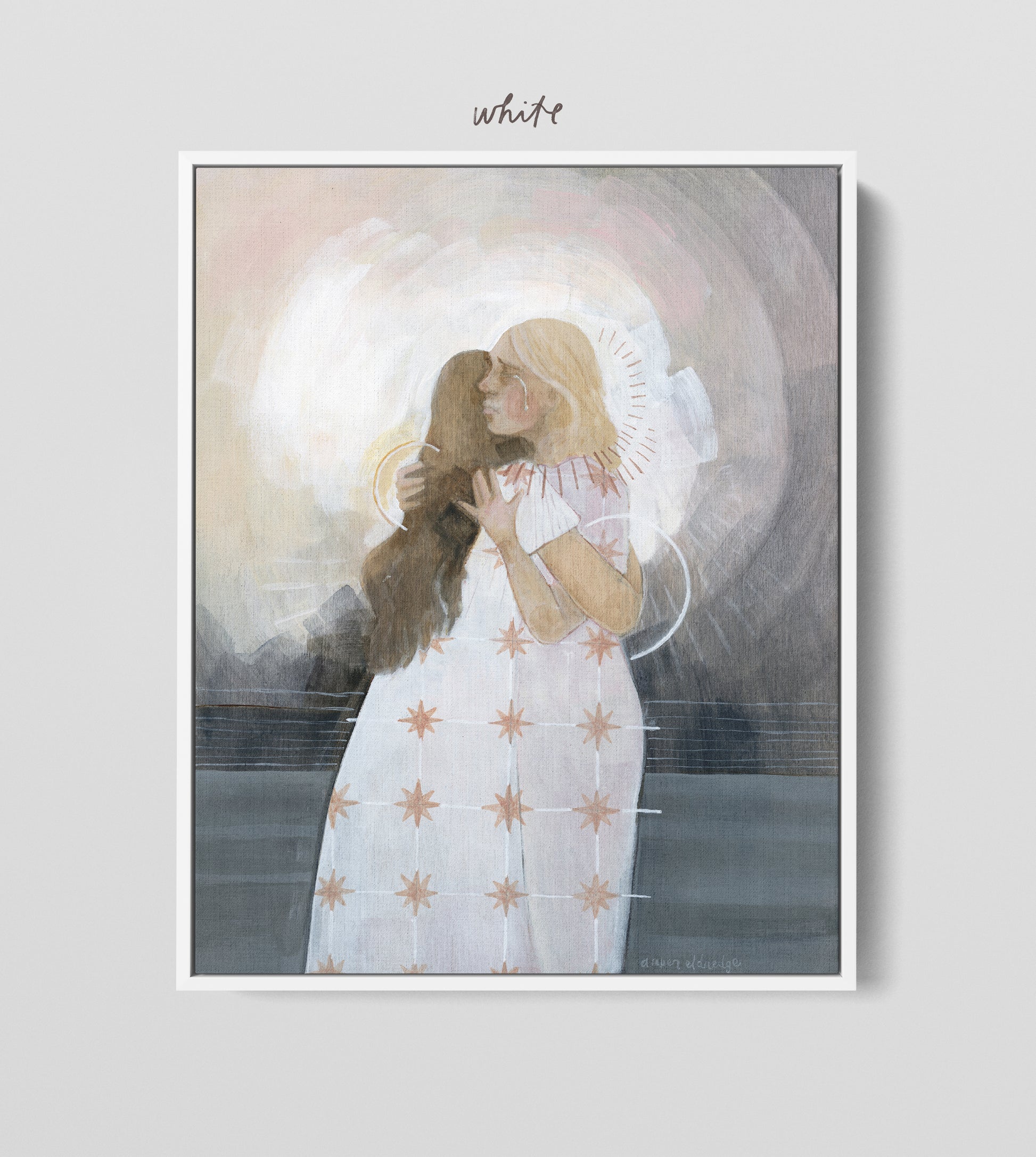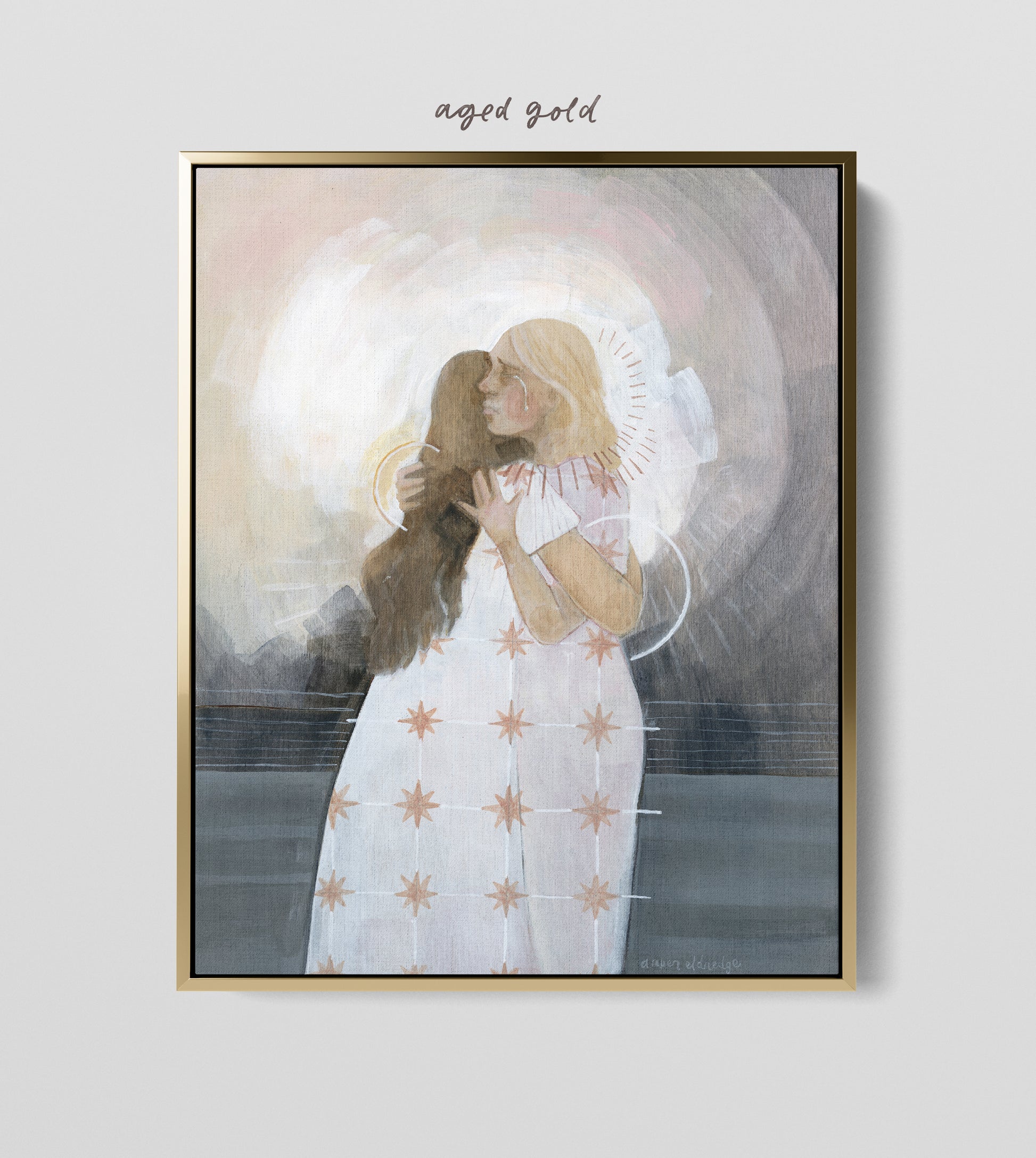 Framed canvas prints are wrapped with a 1.5" edge, with your choice of gold or white framing. Or 1.25" with black, natural oak, or walnut framing. Floater frames are a distinctive framing choice that gives the illusion of the artwork floating inside the picture frame, a beautiful visual detail to elevate your print & space! Ready to hang with a wire finish. Perfect for gifting!