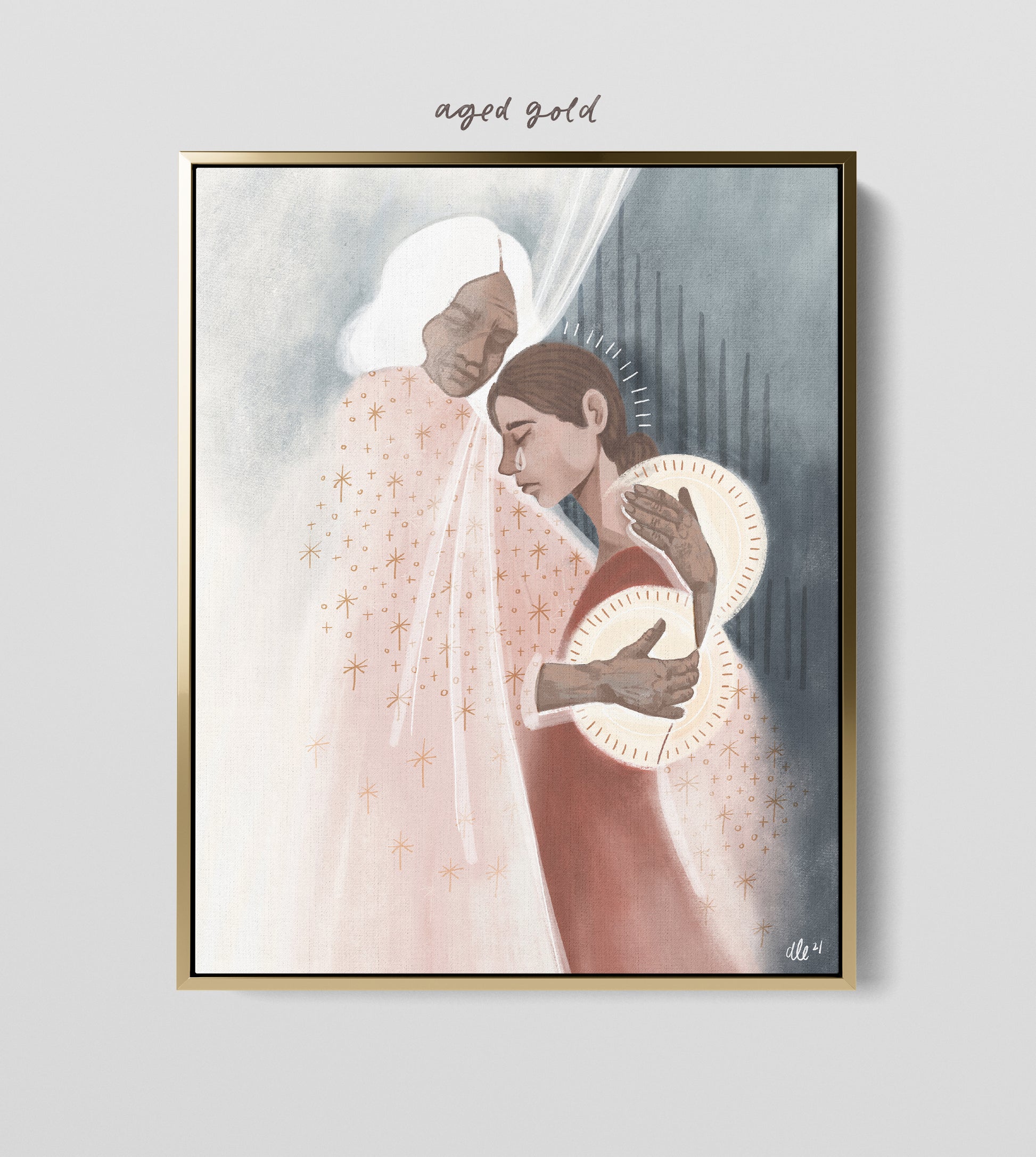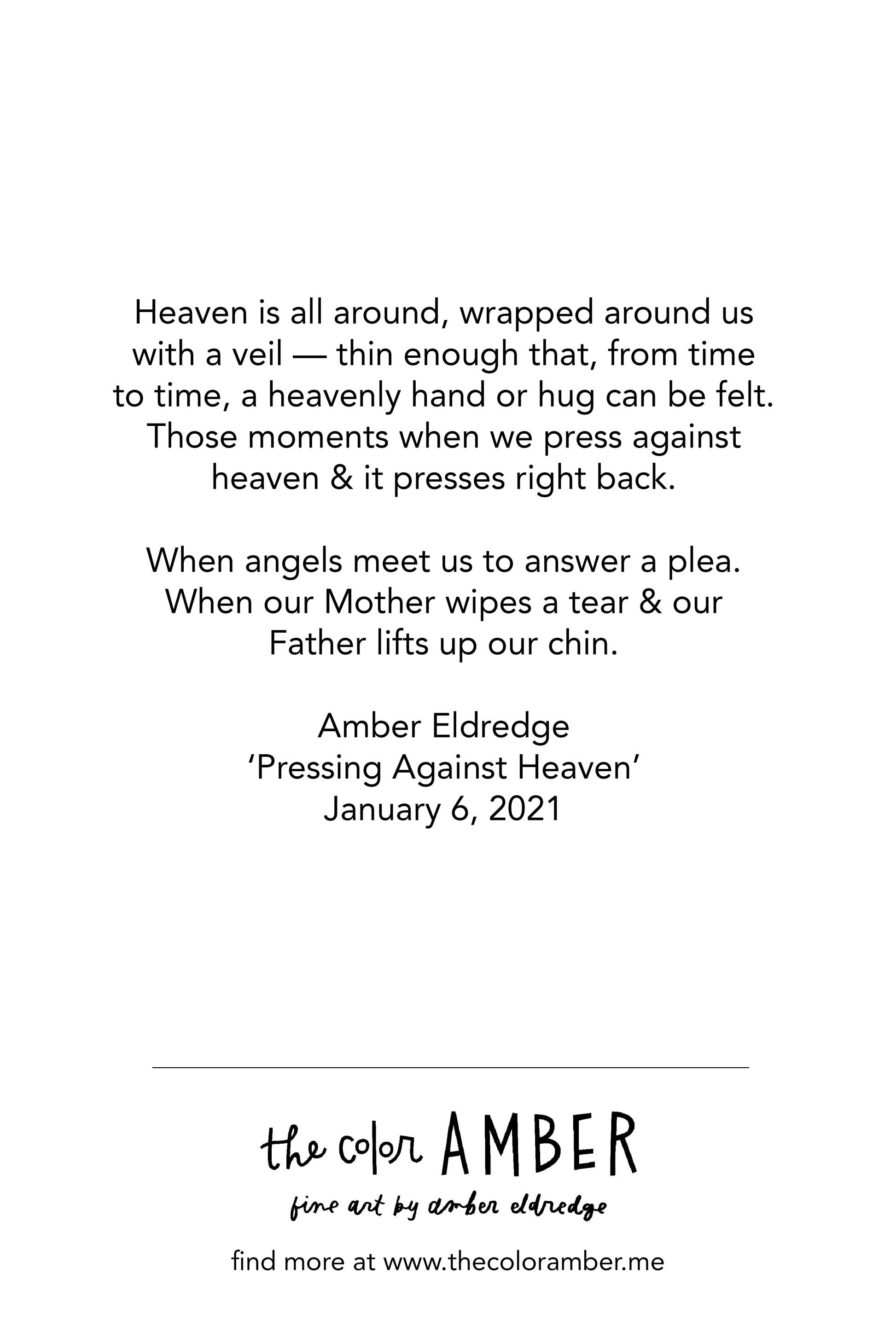 Experience the longing for home and the search for our Heavenly Parents with 'Pressing Against Heaven' Print + Canvas. Feel the embrace of heaven as we press against it and it presses back, creating a personal connection beyond the veil. Bring this poetic and emotional piece into your home.