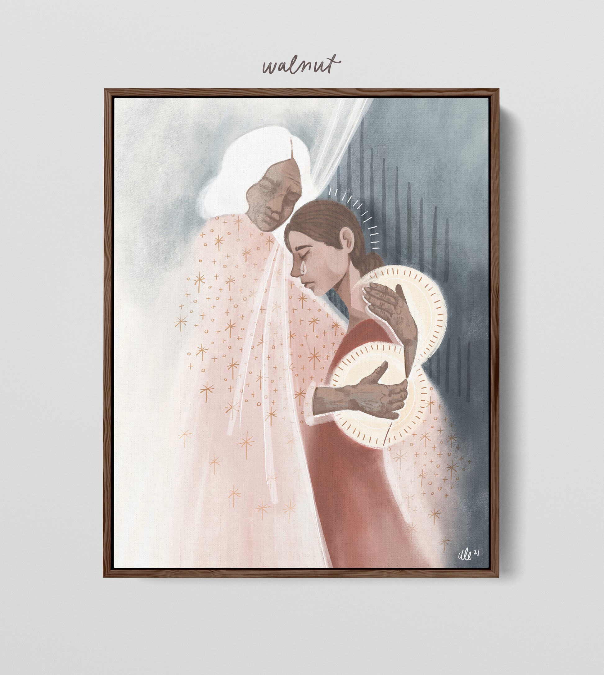 Framed canvas prints are wrapped with a 1.5" edge, with your choice of gold or white framing. Or 1.25" with black, natural oak, or walnut framing. Floater frames are a distinctive framing choice that gives the illusion of the artwork floating inside the picture frame, a beautiful visual detail to elevate your print & space! Ready to hang with a wire finish. Perfect for gifting!