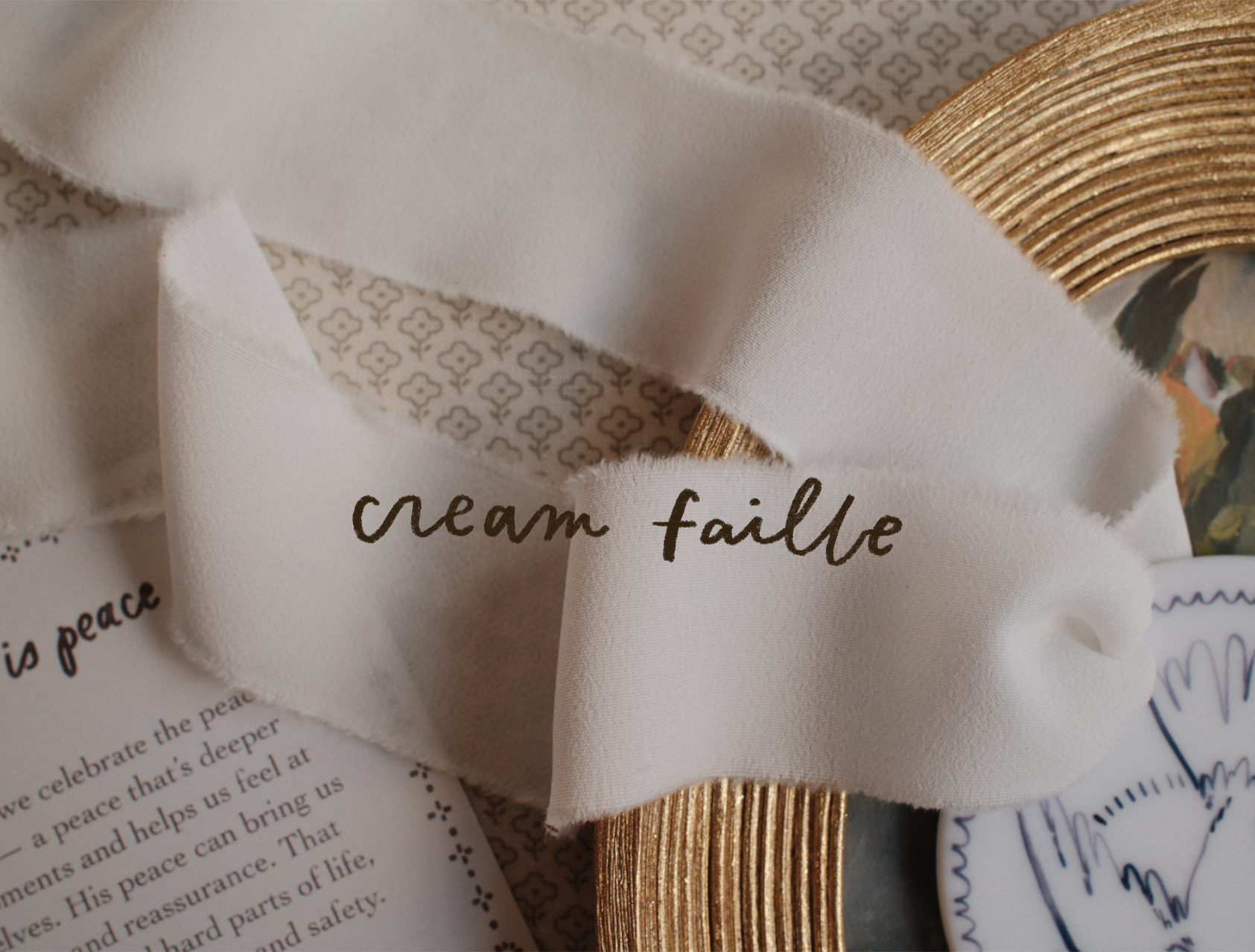 Ribbon is all hand-torn from vintage & deadstock fabric — all individual ornaments are tied with handmade 1.5" cream faille ribbon
