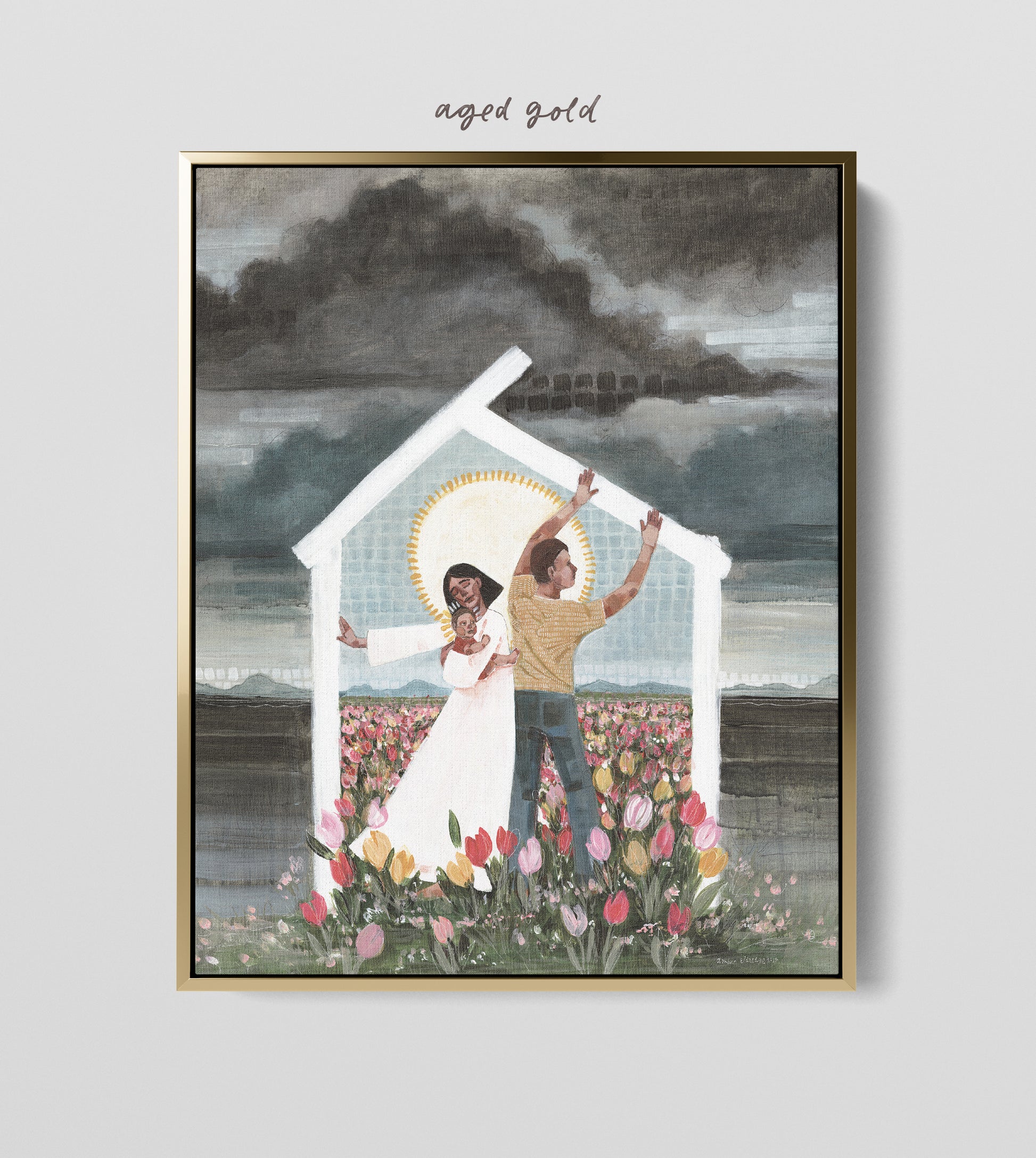 Framed canvas prints are wrapped with a 1.5" edge, with your choice of gold or white framing. Or 1.25" with black, natural oak, or walnut framing. Floater frames are a distinctive framing choice that gives the illusion of the artwork floating inside the picture frame, a beautiful visual detail to elevate your print & space! Ready to hang with a wire finish. Perfect for gifting!